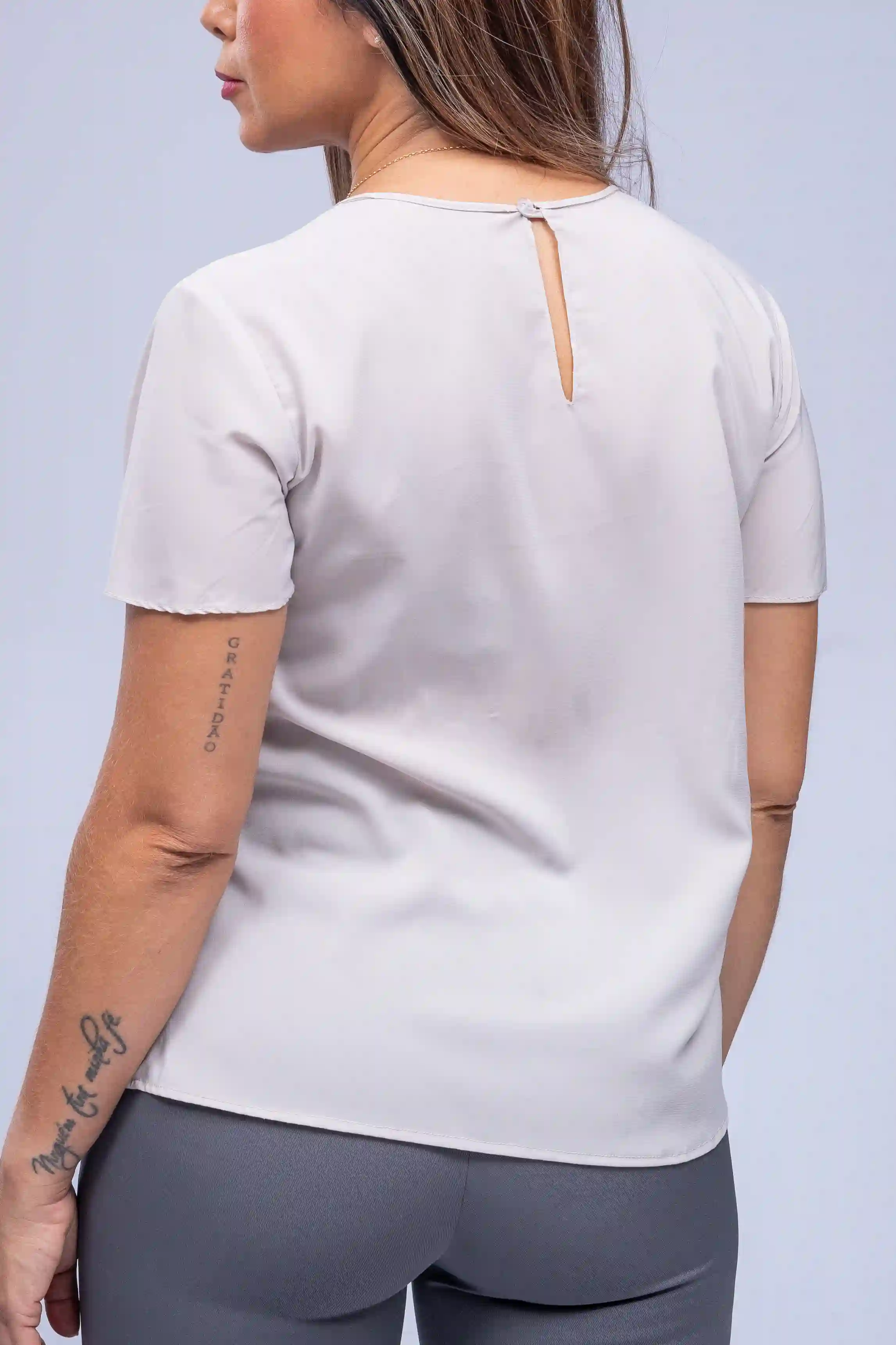 Blusinha Social em tecido musseline com elastano, manga curta e gola redonda. Sua logomarca ja inclusa. Faça seu orçamento.