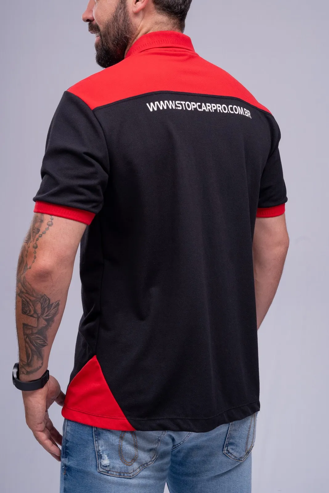 Camisa Polo manga curta Personalizada (Preto+Vermelho) Gola Tradicional, Fechamento em botões e Recorte costas e laterais. Sua logomarca inclusa. Faça seu orçamento.