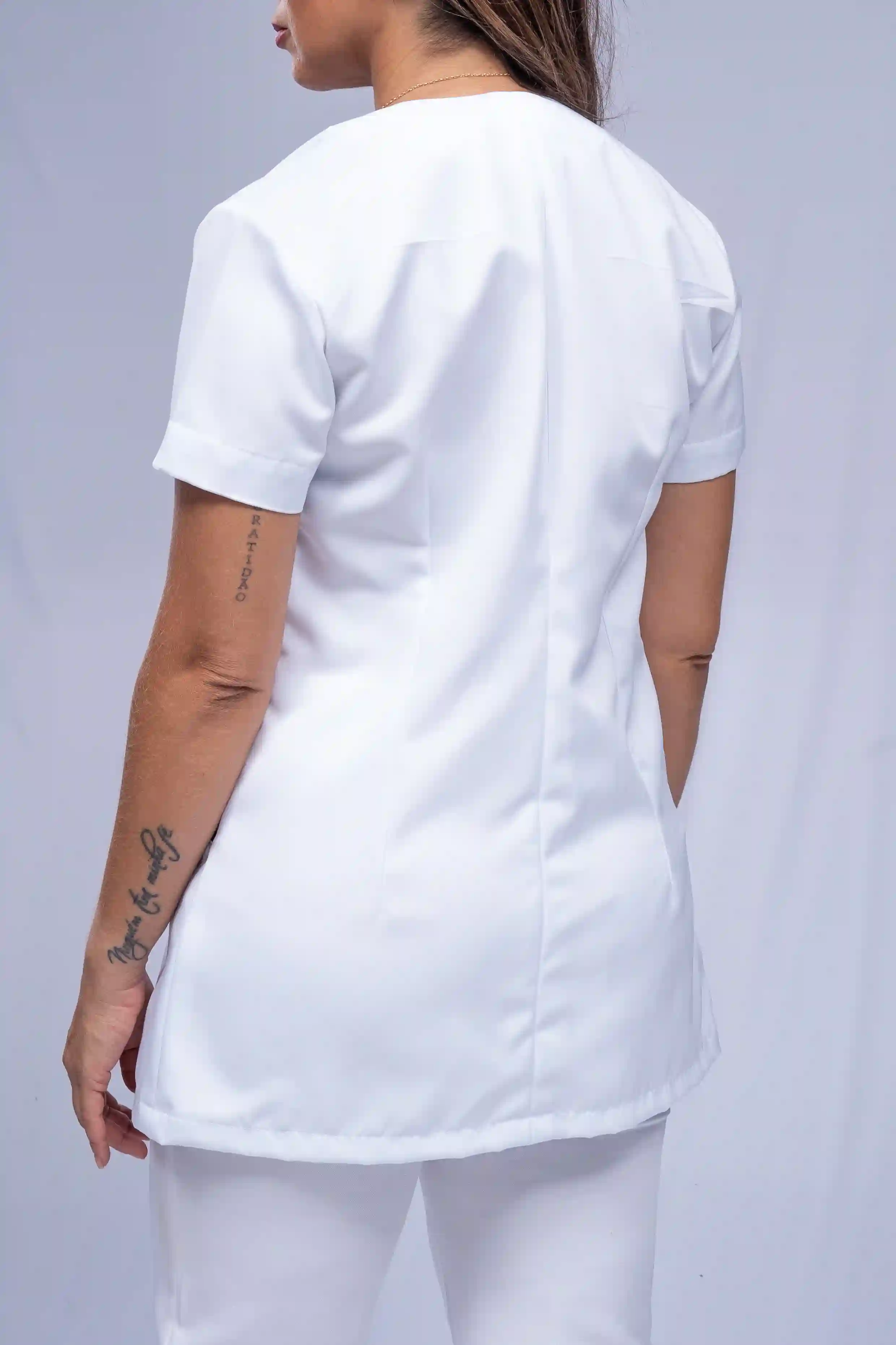 Scrub social com abertura frente com botões e lapela coberta. Manga curta. Bolso interno com detalhes laterais em friso. Sua logomarca inclusa. Faça seu orçamento.