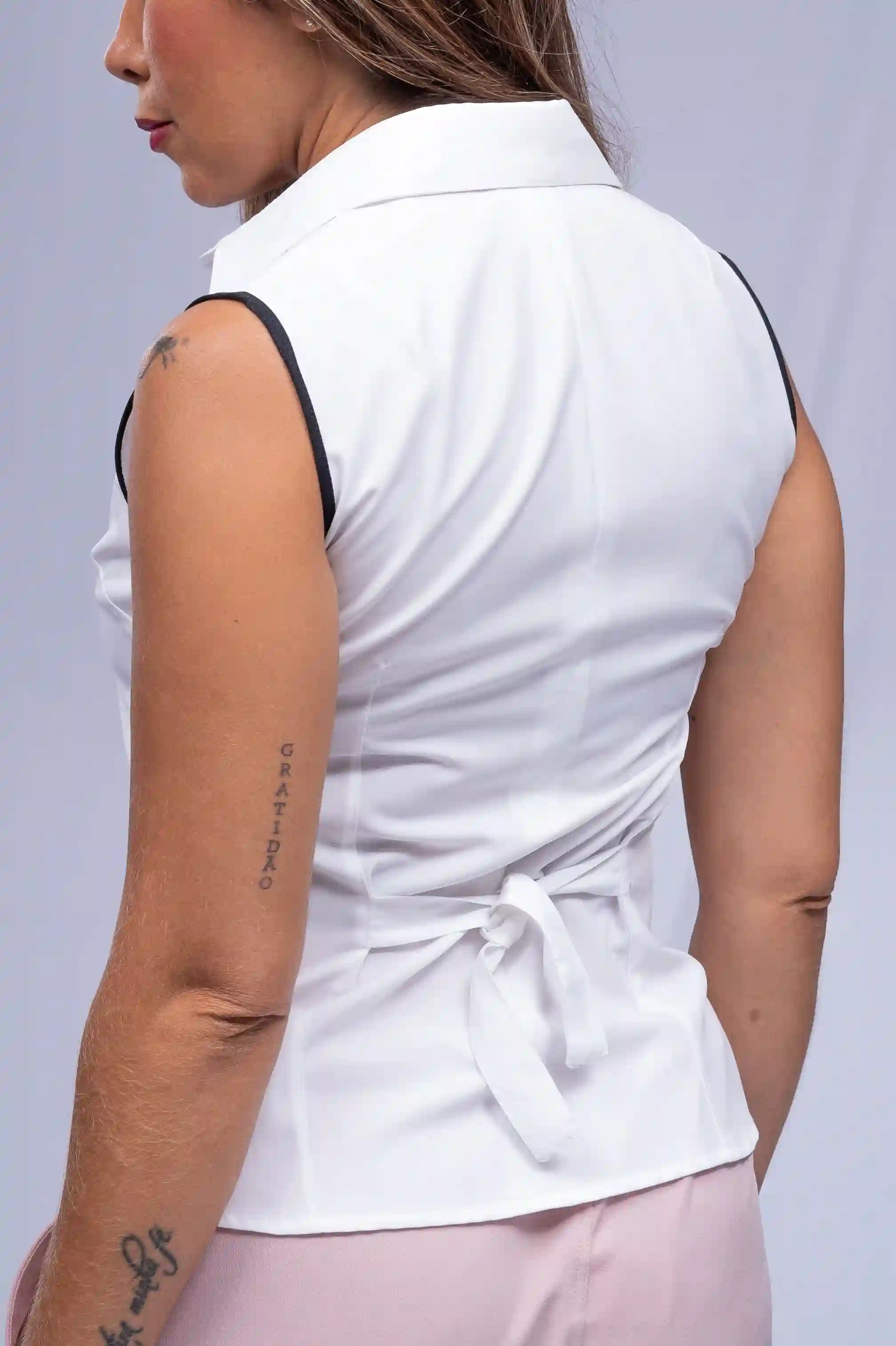 Camisete social modelo regata em tecido city poliéster com detalhes em cor costura pregas. Fechamento em botões duplos frente. Sua logomarca incluso. Faça seu orçamento.