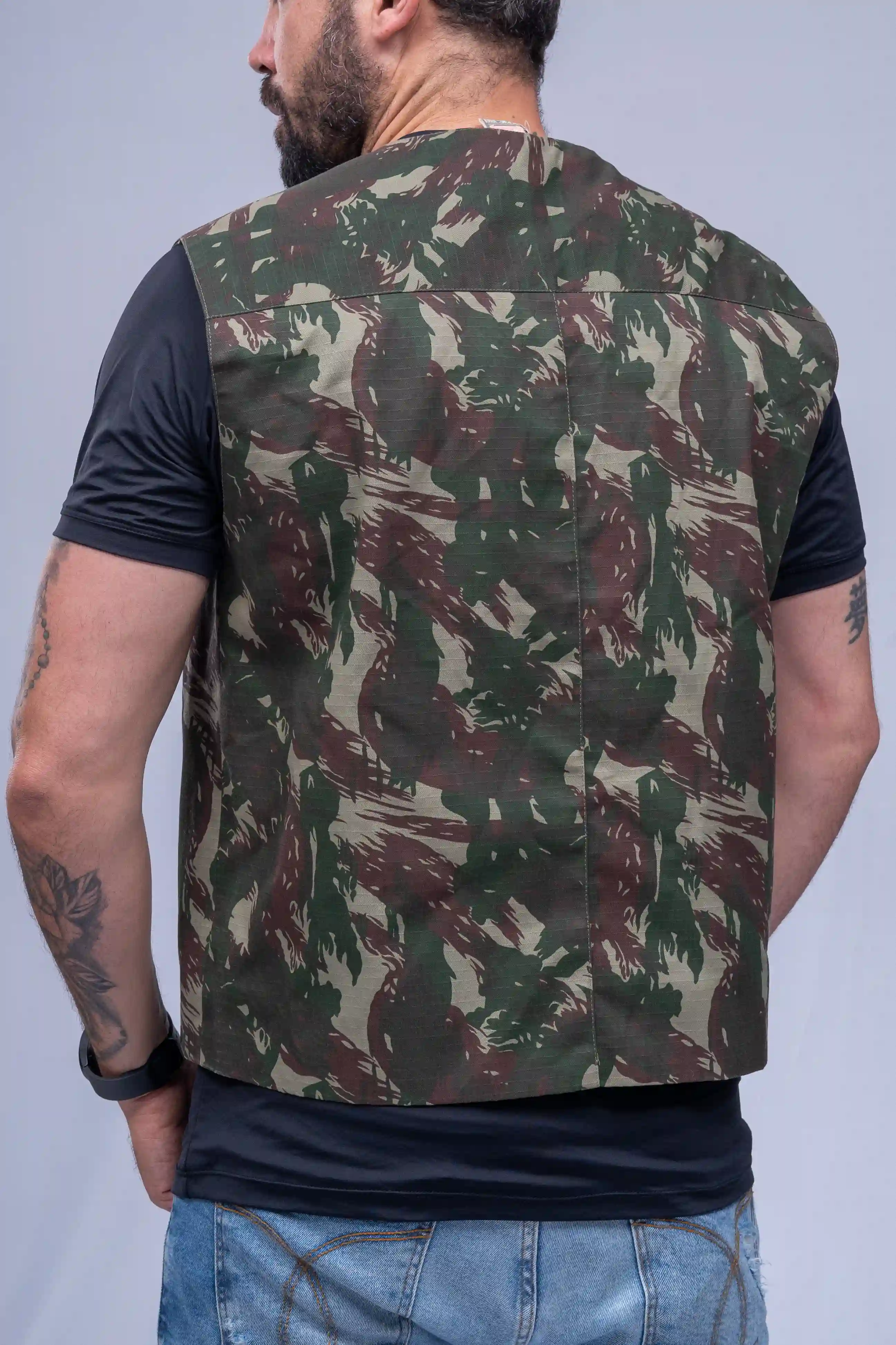 Colete em tecido ripstop cor camuflado. Fechado em zíper e com bolsos com zíper.Sua logomarca inclusa. Faça seu orçamento.