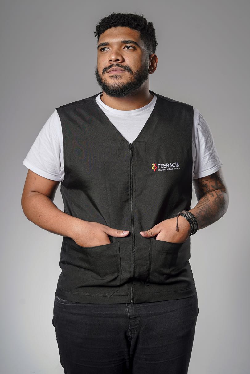 Colete básico em tecido oxford 100% poliéster. Fechamento em zíper comum frente. Bolso tradicional na barra.Sua logomarca inclusa. Faça seu orçamento.