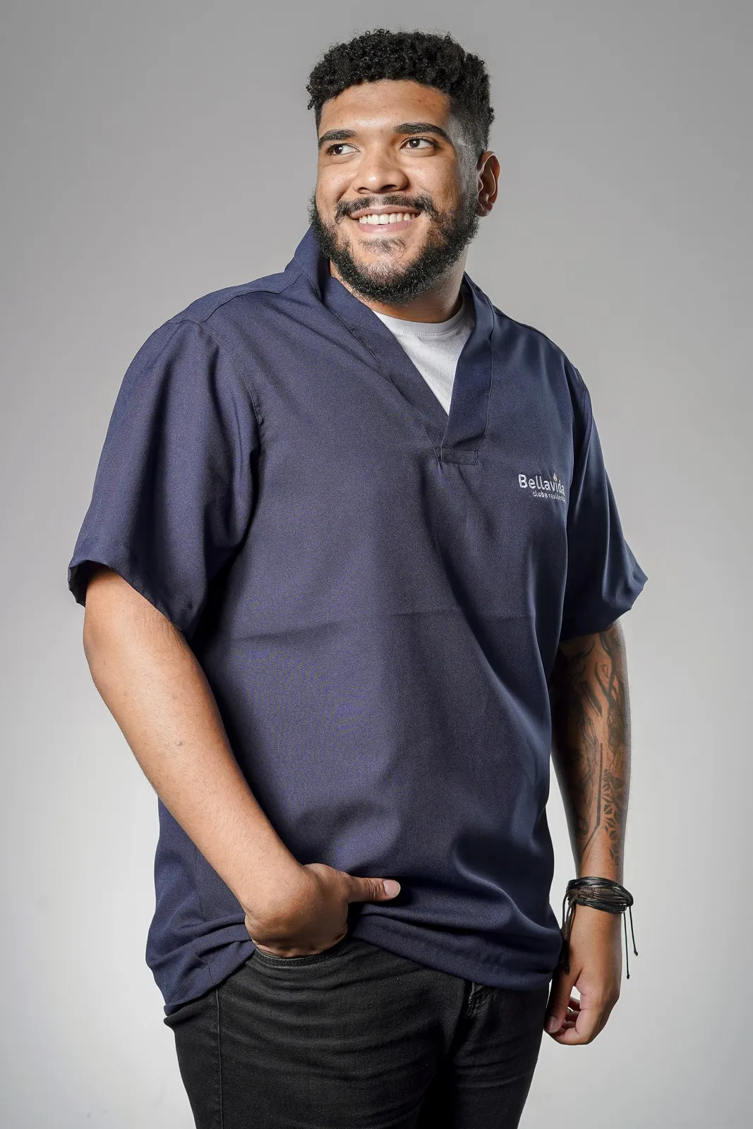 Jaleco Básico confeccionado em tecido poliester com Gola decote em V e manga curta. Sua logomarca personalizada, faça seu orçamento
