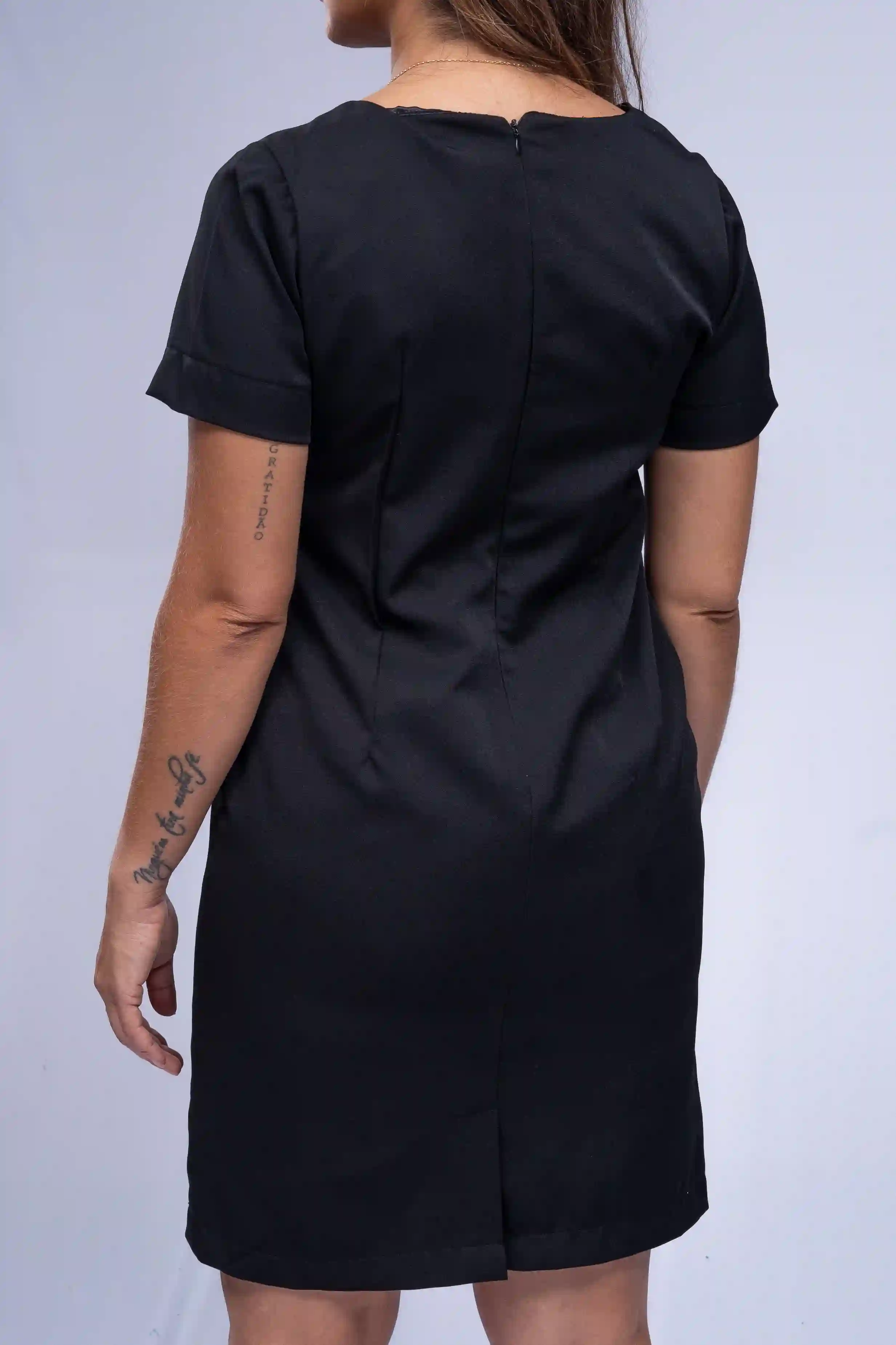 Vestido tubinho social feminino. Manga surta. Frente cintura com botões a parte tipo saia. Gola canoa. Fechamento costa em zíper. Sua logomarca inclusa. Faça seu orçamento.